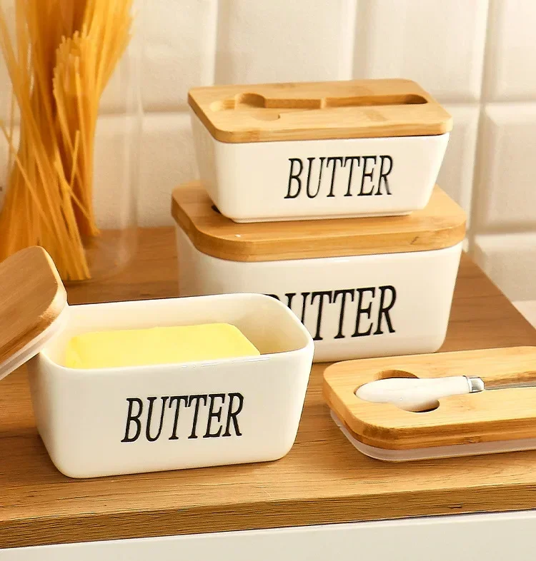 Butter Container Butter Box Ceramic Restaurant Sealed Storage Box Cheese Boxwith Knife Butter Slicer Butter Storage Butter Dish